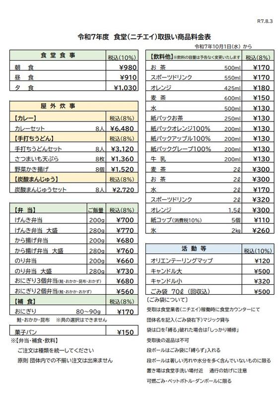 代替食が必要な場合には、直接・利用初日の15日前に食堂へ連絡していただくようお願いいたします。