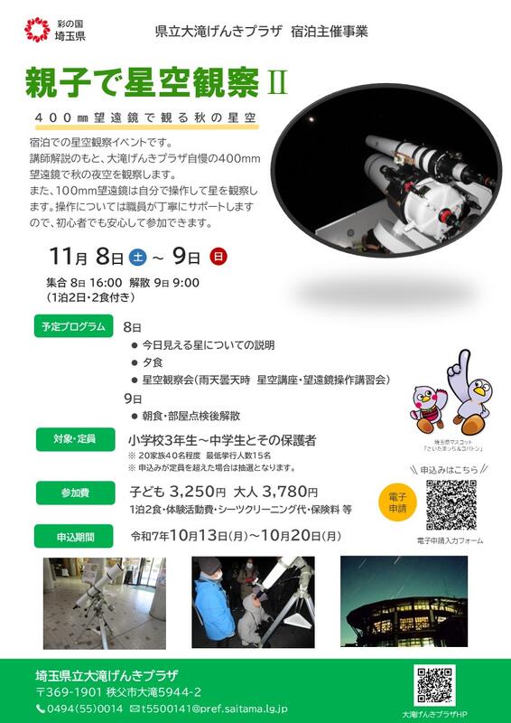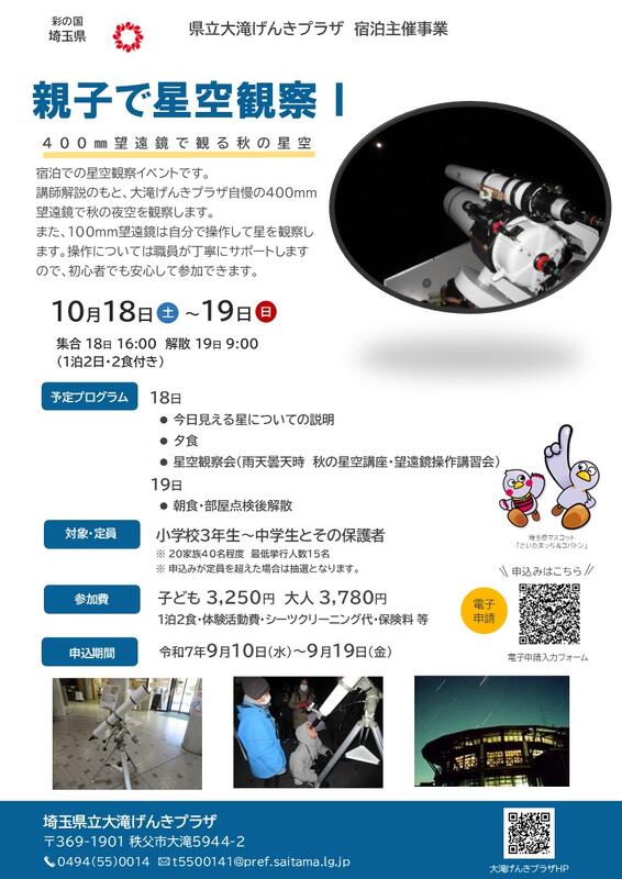 「秋の夜長」は大滝げんきプラザで、親子でゆっくりと星空をながめてみませんか。